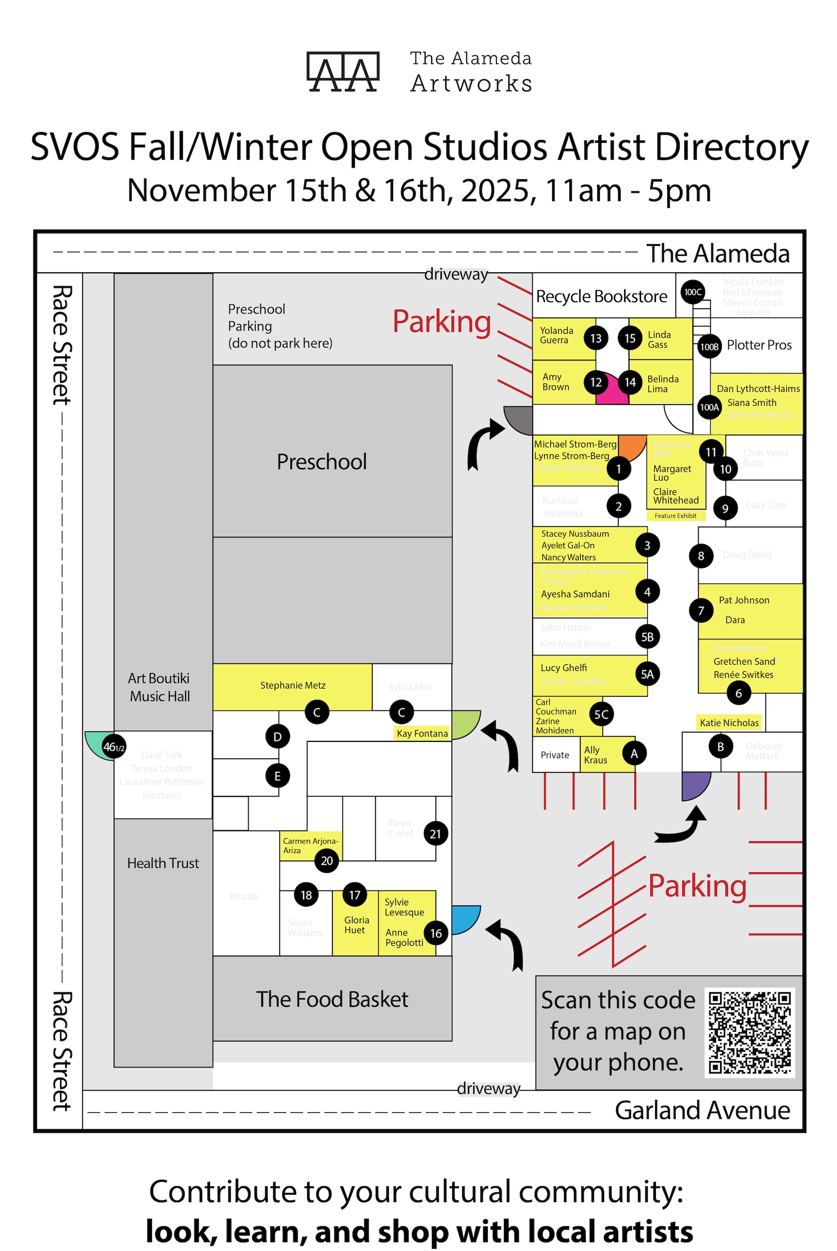 You can ask questions, get inspired, and purchase a special piece directly from all artists at the Alameda Artworks.